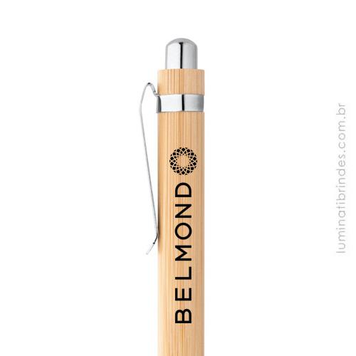 Caneta Green Bambu Personalizadacom ponta esferográfica e carga para uma escrita macia e firme com mais de um quilómetro. Confeccionada em bambu, com botão e clip em metal reciclável para prender onde quiser. Pode ser personalizada a laser ou tampografia. Surpreenda a sua equipe com esta caneta ecológica da Brindes Design.